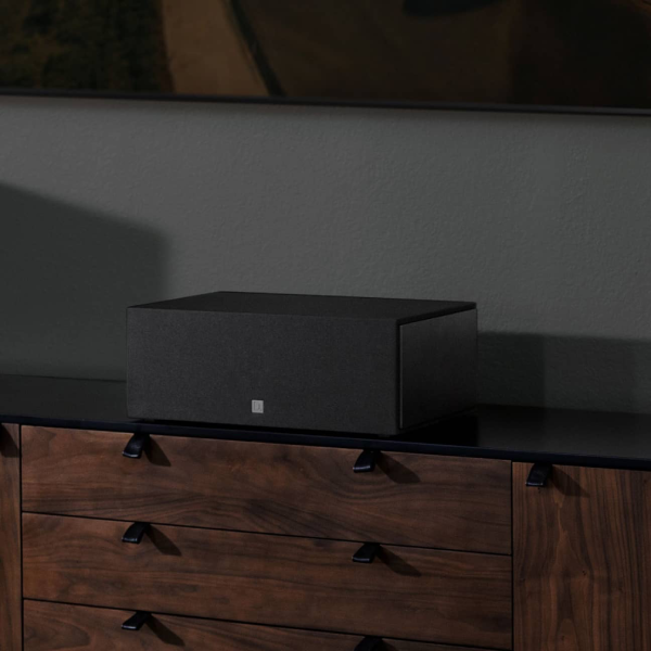 The DM10 is wrapped in an acoustically transparent black grille cloth. As soon as you dim the lights, it virtually disappears into your room—so you can focus on the movie, not your speakers.