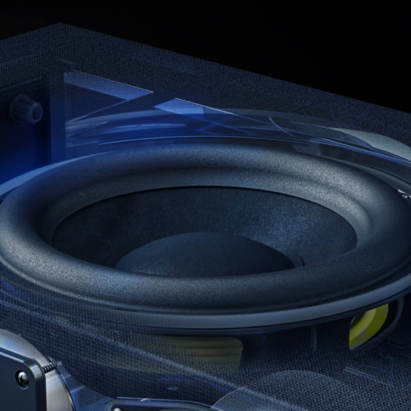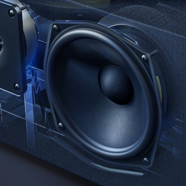 An integrated 9" passive radiator enhances bass impact, perfectly blending with mids and highs to anchor voices and effects with rich, full-range sound.
