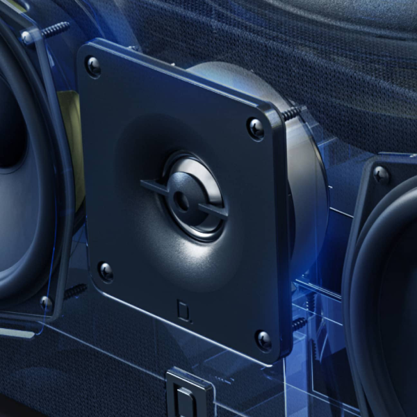 An aluminum oxide tweeter delivers crisp detail for unrivaled nuance and speech clarity
