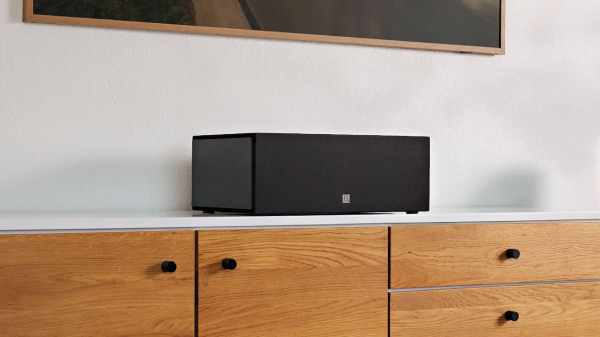 The Dymension™ DM10 center channel speaker with integrated bass radiator delivers full-range sound with big bass impact in a compact footprint.