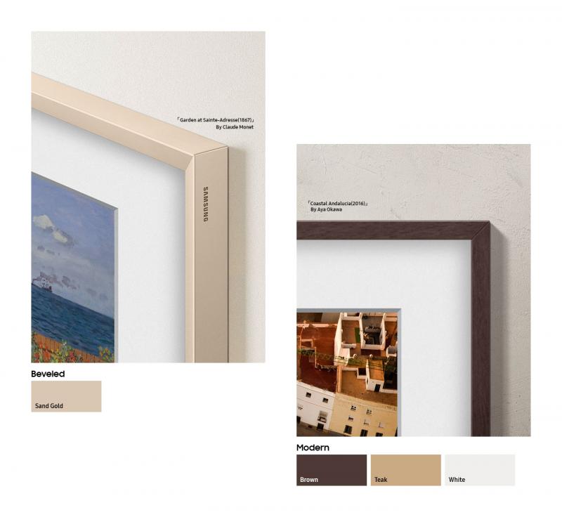 The Frame Bezel's availability is based on bezel type. Modern type is available for the 43'~ 85' range of The Frame TVs, while Beveled type is available for 65” and 55” models.
