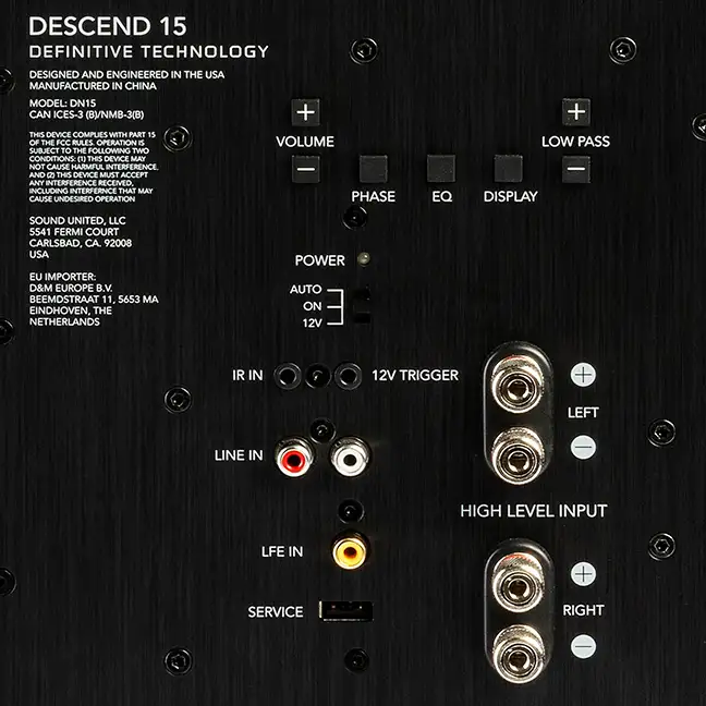 With both 12V input and IR pass-through, you have the ability to pair the DN15 with most control systems and place the subwoofer wherever you want in the room and still experience full functionality.