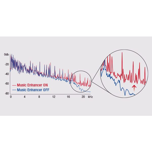 When music is encoded into a digitally compressed format like MP3, the frequency response suffers. Yamaha’s Compressed Music Enhancer employs sophisticated digital signal processing using exclusive algorithms to restore what was lost, so the music always sounds the way it should.