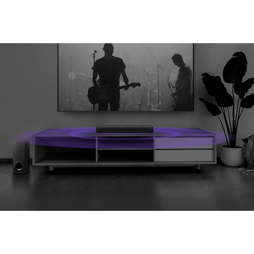 The original technology in the SR-C30A goes beyond conventional speaker directivity to create a breathtaking sound field that seems to be coming above the sound bar itself, from the center of the TV screen.