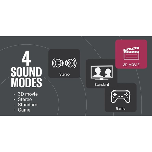 - 4 sound modes: Stereo, Standard, 3D Movie, and Game.