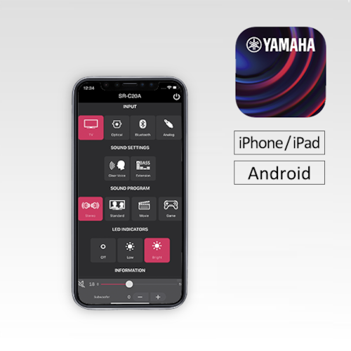 The Sound Bar Remote app provides easy operation for select Yamaha Sound Bars using your smartphone and tablet device.