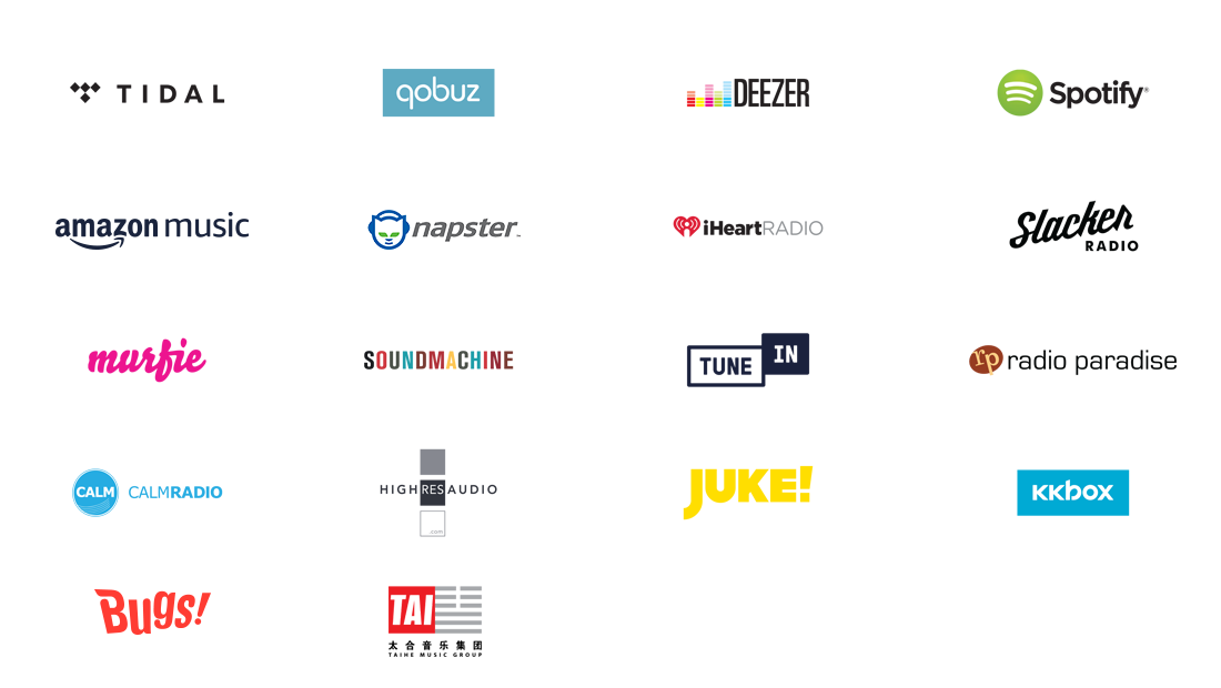 | Supported Cloud Services | Spotify, Amazon Music, TIDAL, Deezer , Qobuz, HighResAudio, Murfie , JUKE, Napster, KKBox, Bugs, Taihe Music ZONE, SoundMachine |