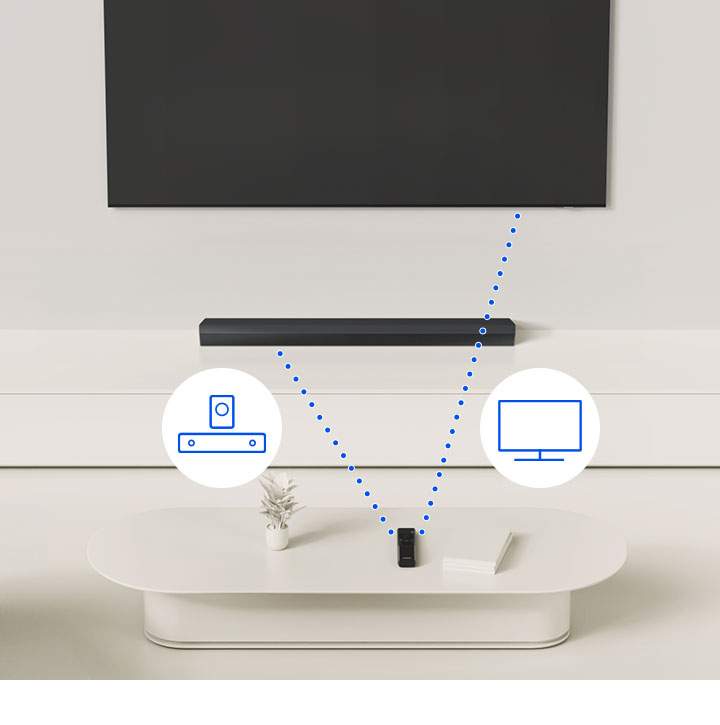 Streamline the control of your Samsung TV and soundbar including volume with just the Samsung TV remote.