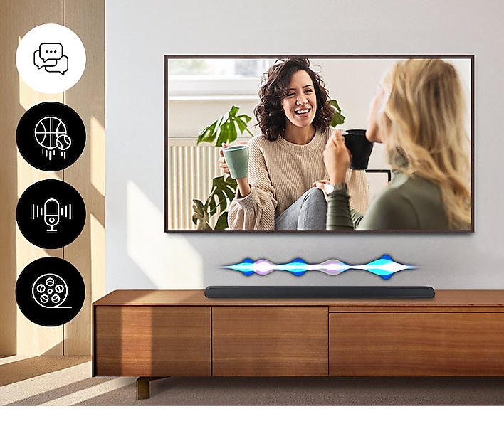 Ensure dialogue and commentary are not drowned outso you never miss an important moment. Active Voice Analyzer breaks down room noise so that onscreen voices are always optimized.