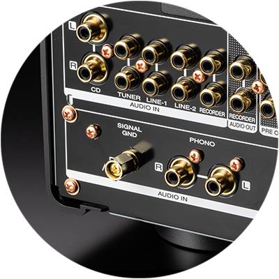 | Audio (In/Out) Terminals *except Power Amp Direct In(or Ext-Pre) and Pre-out | 6/1 (PHONO / MM&MC / CD / TUNER / LINE 1 / LINE 2 / RECORDER) * [PHONO] and [CD] inputs = high grade terminals. |