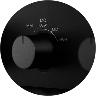 In order to optimize sound performance when using a moving coil (MC) or magnetic moving (MM) cartridge, and to accommodate all configurations as much as possible, MODEL 30 is equipped with an input impedance selector. The input impedance can be adjusted to three different settings: MC LOW (33 ohm), MC MID (100 ohm) and MC HIGH (390 ohm).