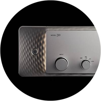Envisioned to deliver optimal sound quality by simplifying the signal path – vital given the delicate nature of phono signals – the Phono EQ stage in MODEL 30 can be used with both moving magnet and low-output moving coil cartridges, thanks to a built-in MC head amplifier.