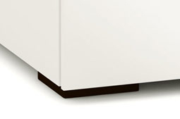 High-gloss, warm white side panels and doors beautifully offset the glass top. This contemporary style truly captures the cosmopolitan vibe of trendsetting Miami. This cabinet may be mounted to the wall by simply removing the feet and attaching the wall mounting accessory.