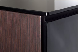 This black beauty's ultra-sleek techno aesthetic with aluminum framed doors and smoked glass is designed for true technophiles and urban sophisticates. This cabinet may mounted to the wall by simply removing the feet and attaching the wall mounting accessory.