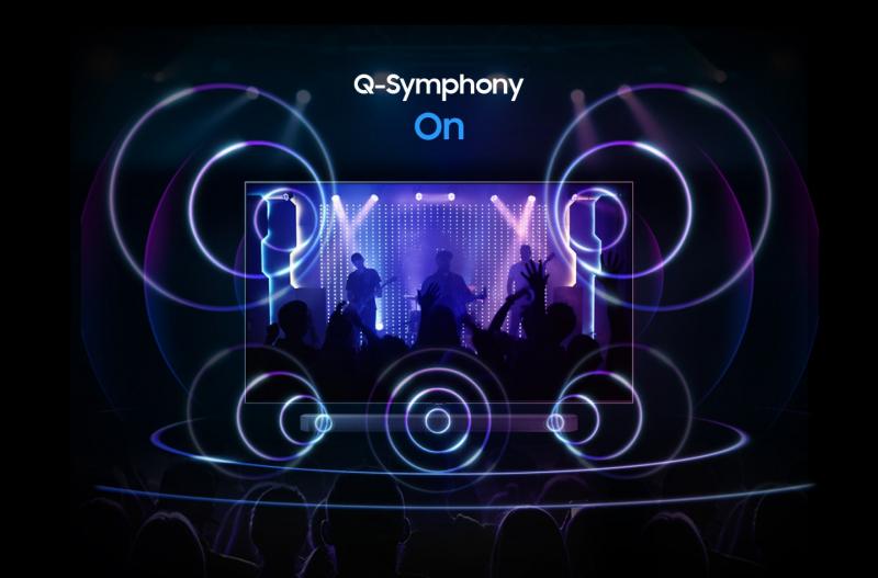 Q Symphony is one of the Samsung exclusive technologies. It enables both TV speakers and Soundbar to work simultaneously, creating the ultimate sound synergy. Now compatible with more Samsung TV models.