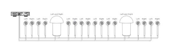 - Complete outdoor landscape system with flexibility for configurations of eight Satellite speakers and one Subwoofer up to sixteen Satellite speakers and two Subwoofers on a single amplifier.