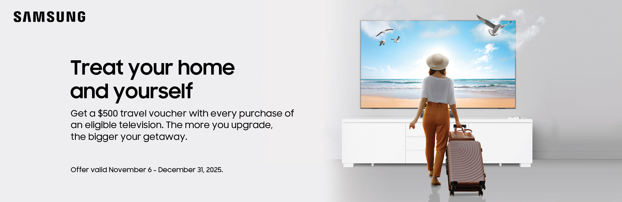 Get a $500 travel voucher with every purchase of an eligible television. The more you upgrade, the bigger your getaway.